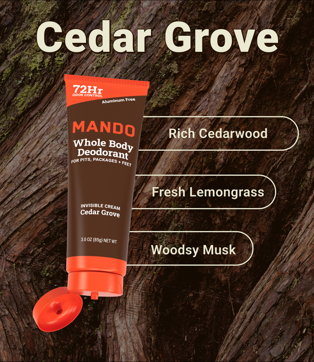 For the Cedar Grove scent launch, I built the creative direction around an earthy, grounded look inspired by natural textures and warm, outdoorsy tones. I developed the moodboard, set the palette and typography, and designed custom scent icons to help communicate the fragrance notes in a simple, elevated way. I designed the full suite of assets—performance ads, social content, email graphics, and the website hero—keeping everything cohesive and rooted in the Cedar Grove story. The goal was to introduce the new scent with visuals that felt rich, natural, and premium while still driving clarity and conversion across channels.