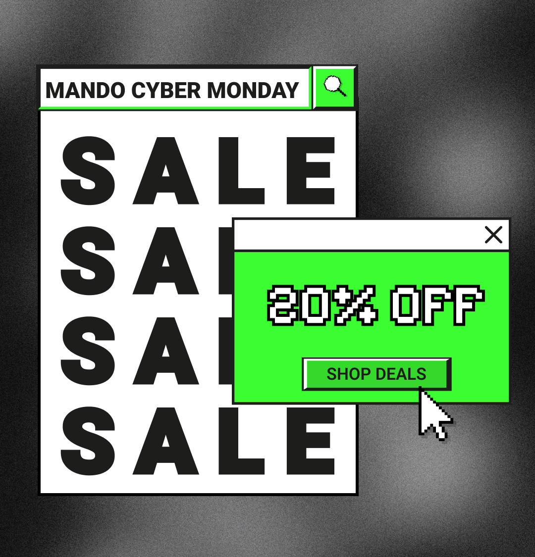 For Mando’s 2024 Black Friday + Cyber Monday campaign, I helped develop the creative moodboard and overall visual direction, establishing a bold, high-contrast look that could flex across every platform. I designed the full suite of assets—from social ads and paid performance units to email graphics—ensuring consistency in typography, texture, color, and promo hierarchy. The goal was to create fast-grabbing, high-impact visuals that felt unmistakably Mando while driving urgency and conversion throughout the sale